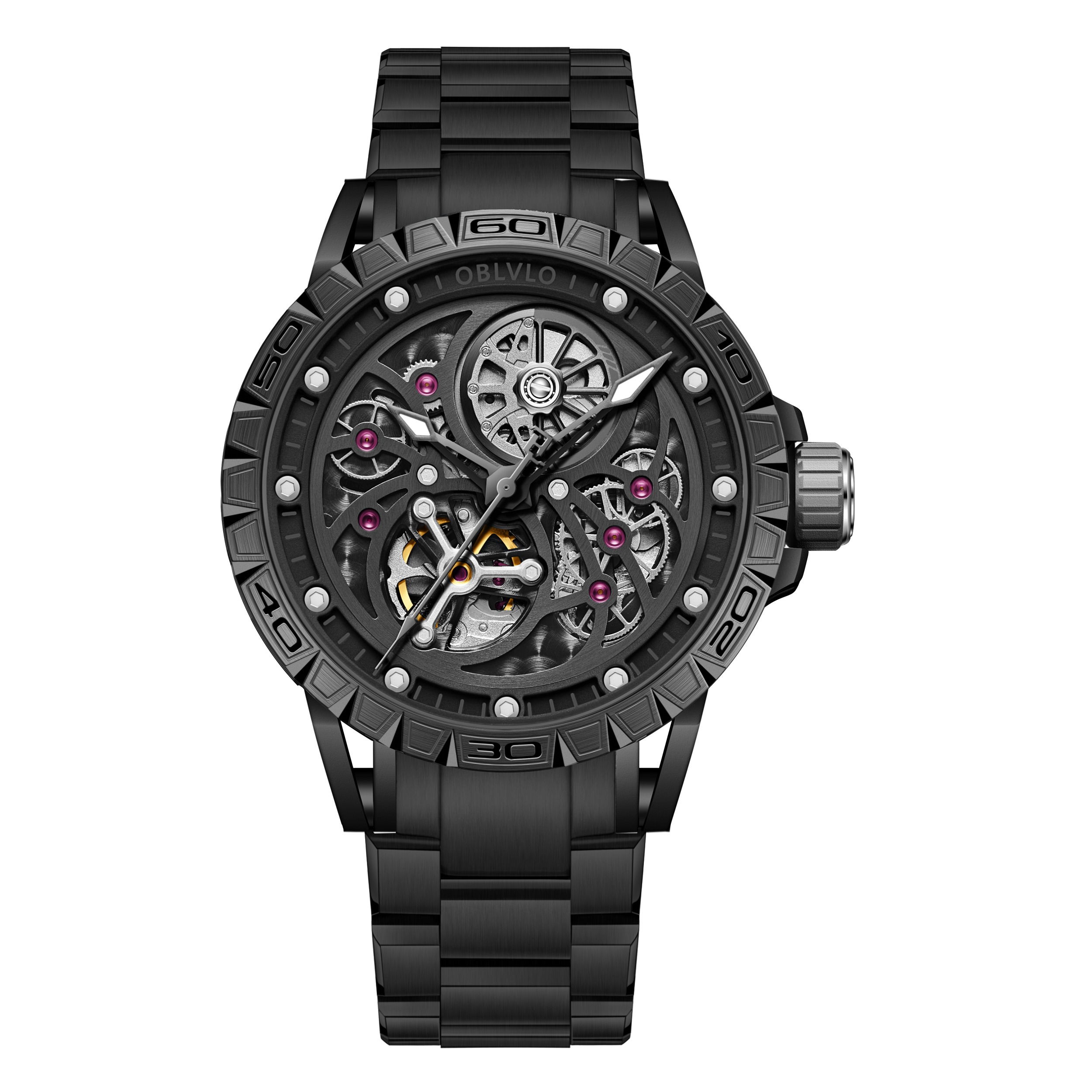 Dial Design: anoramic skeleton mechanical design with super luminous, platinum-plated steel hands.