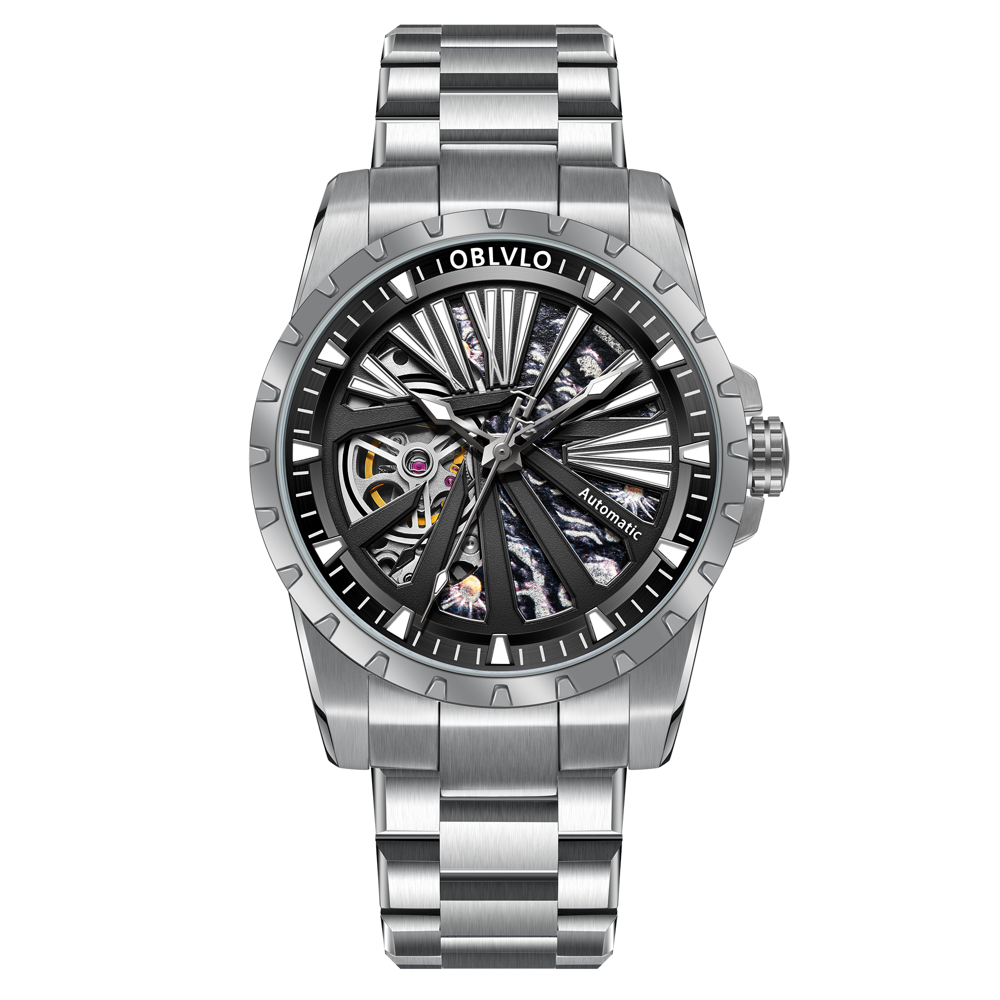 Dial Design: Special hollow dial design with wheel gear bezel, shiny super luminous dial.