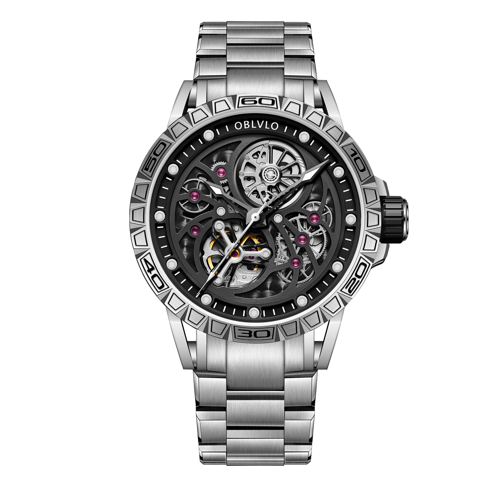 Dial Design: anoramic skeleton mechanical design with super luminous, platinum-plated steel hands.