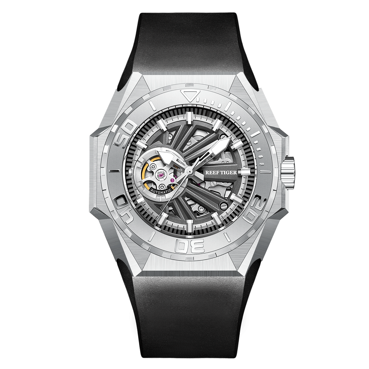 Dial Design: Silver Skeleton Dial & Watch face is designed with luminous watch hands display dial.