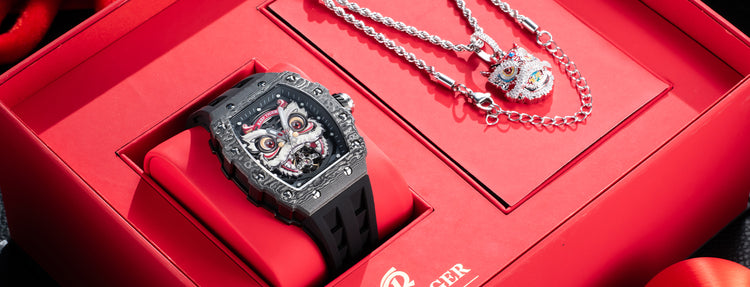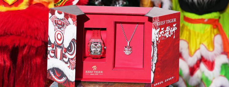Reef Tiger RGA3009 Chinese Lion Dance🦁️ Carbon Fiber & Super-Luminova Skeleton Automatic Watch.